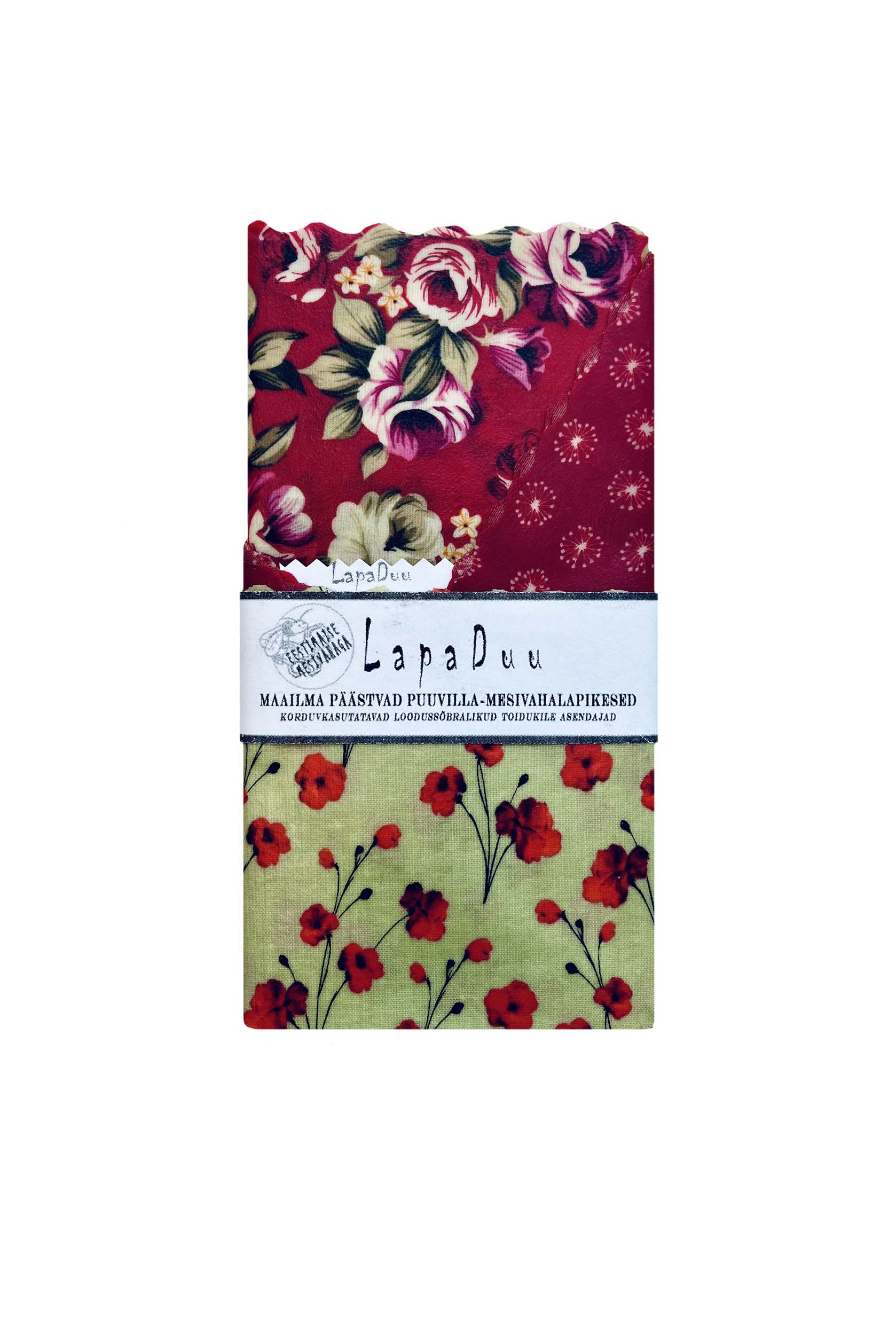 The beeswax wraps initially carry a sweet honey scent, which dissipates after a few uses. Good news for those with honey allergies: due to the ultra-pure pharmaceutical-grade beeswax used in their production, LapaDuu wraps are suitable for you as well. They are completely clean, ecological, Estonian-made, and allergy-free. However, please note that: LapaDuu wraps are not suitable for wrapping raw meat or fish.