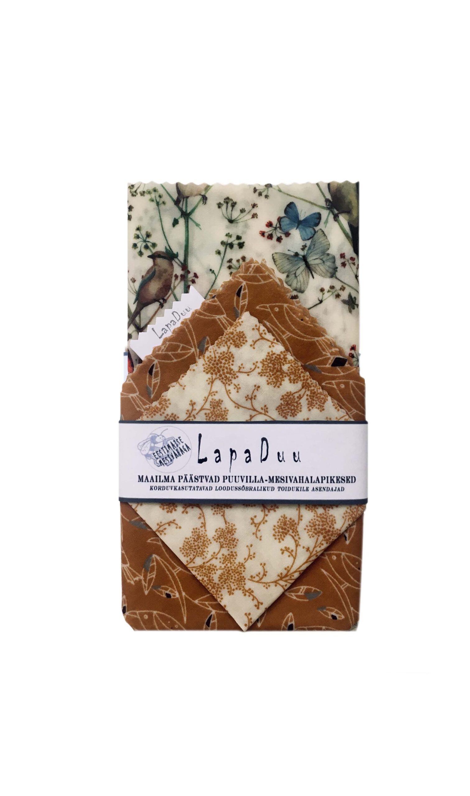 LapaDuu on loodussõbralik alternatiiv toidukilele! Loodud selleks, et meie armas ilm vähem hukka saaks. Korduvkasutatav kuni 100 korda. Üdini Eestimaine käsitöö, mis immutatud Eesti mesilaste toodetud, puhta, farmaatsiakvaliteediga mesilasvahaga ning on 100% biolagunev.